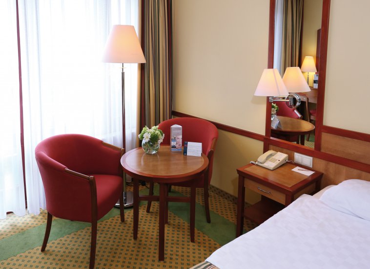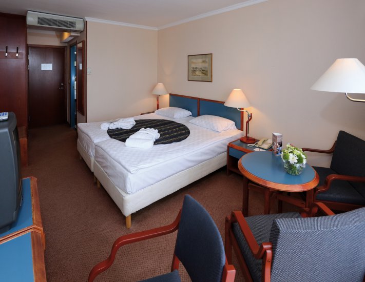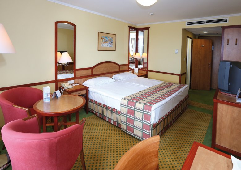 200 air-conditioned rooms with bath, balcony, hair dryer, bathrobe, telephone, minibar, radio, Sat.-TV. Superior floor, connecting rooms, rooms for disabled guests and anti-allergy rooms.