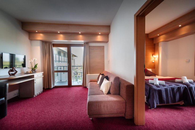 Vendégeink kényelmét biztosítja, hogy szállodánkat zárt, fűthető folyosó köti össze a Gyopárosfürdő Gyógy-. Park- és Élményfürdővel, és Szauna Parkkal, ahol többek között 3 kültéri és 4 beltéri vízforgatásos medence, 2 óriáscsúszda, vízi élményelemekkel (nyakzuhany, gomba, vízisün, fekvő masszázs, sodrófolyosó, buzgár, gejzír), fényterápiás aromakabin, danárium, gőzkabin, infrakabin, finn szauna, csobbanó-medence, pezsgőmedence, valamint a gyógyvízre épülő hagyományos gyógyászat várja a rekreációra, a testi-szellemi megújulásra, vagy a felhőtlen szórakozásra vágyókat.