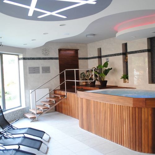 12 személyes jakuzzi, barlangszerű bejárattal kiépített infraszauna, fából készült dézsazuhany, relax sókabin, masszázsok, manikűr és pedikűr, valamint fintesz terem áll vendégeink rendelkezésére. Hotelünkhöz egész nap zárt, kamerával figyelt parkoló tartozik.