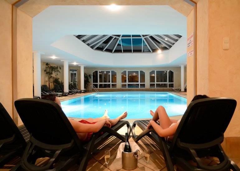 A szállodában a külső és belső medence, a pezsgőfürdő is várja a vendégeket. A kisgyermekek fürdéséhez szükséges úszópelenkát is tudnak biztosítani.