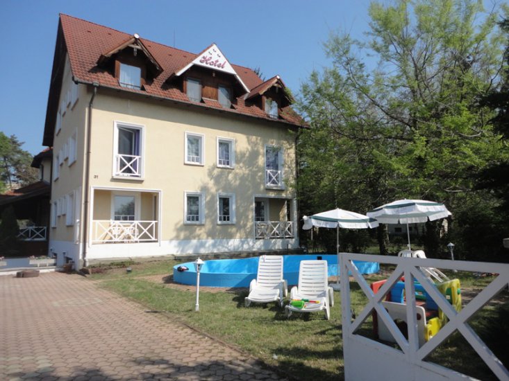 A Balaton partjától 150 méterre található kellemes hangulatú, 60 ágyas, középkategóriás szálloda. A vízpart (saját napozóstég) távolsága kb. 180 m, a szabad strandé kb. 350 méter. A szálloda ideális szálláshely biciklitúrázók részére is. A városközpont (szórakozó, bevásárló helyek, napfény strand, kertmozi) 1 km. Kérjük, foglaláskor vegyék figyelembe, hogy a vasútvonal távolsága 10 m.