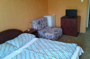 A nyári hónapokban összesen 24 szoba és egy apartman áll vendégeink rendelkezésére. Két-három ill. négyágyas szobáink vannak, tágas apartmanunk pedig első osztályú körülményeket biztosít az itt lakóknak. Konferenciák vagy csoportos rendezvények, utazások esetére kapacitásunkat tovább tudjuk bővíteni 35-40 szobáig! Minden szobánk fürdőszobás (zuhanyzó, mosdó, WC), korszerűen berendezett és televízióval ellátott. A szobák túlnyomó többségéből erkély vagy terasz nyílik a szabadba, ahonnan udvarunkra ill. a Balatonra pillanthatunk.