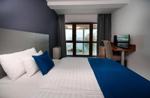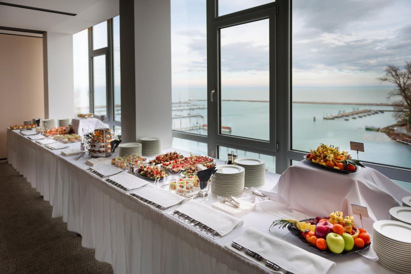 A Hotel Yacht**** Wellness& Business a fentieken túl egy kiemelkedő felszereltségű, 300 fő befogadására alkalmas konferencia központnak is helyet ad, amelynek egyedülálló eleme a körpanorámás konferenciaterem. Az ezerarcú Balaton, a változatos wellness szolgáltatások (25 méteres úszómedence, gyermekpancsoló, beltéri pezsgőfürdő, szaunák, sószoba, pihenősziget, masszázsok), a gyermekbarát szolgáltatások és a hatalmas teraszok mellett számtalan helyi és környékbeli programlehetőség gondoskodik róla, hogy a családok és a párok számára is egész évben igazi kikapcsolódás legyen az itt eltöltött idő. Szobák Szállodánkban 70 darab kényelmes kétágyas, erkélyes szoba található. Légkondicionált és többségében erkélyes szobáinkban telefon, LCD televízió, hajszárító, minibár és széf található. Mind a szobákban, mind pedig a közösségi terekben ingyenes wifi használatot biztosítunk vendégeinknek. A szálloda egész épülete és valamennyi szobánk nemdohányzó. Siófok egyik legszebb fekvésű szállodája, a Hotel Yacht étterme szeretettel invitálja Önt és családját egy finom ebédre vagy vacsorára. A több mint 150 fő befogadására alkalmas éttermünkhöz a kikötői sétánnyal közvetlenül határos terasz és kert kapcsolódik. A teraszon nyári estéken a kerti lámpák, gyertyák és az esti Balaton fényei mellett élvezheti a kellemes zenét és a kiváló mediterrán fogásokat, a regionális alapanyagokra és ízvilágra épülő ételeket, balatoni borokat, finom koktélokat. Éttermünkben nemcsak a szállóvendégeinknek szolgáljuk fel a reggelit és a vacsorát, hanem ismert és kedvelt á la carte étteremként egész évben várjuk a Siófokra és a vitorláskikötőbe látogatókat. Gyermekbarát szolgáltatások Szállodánkban kiemelt figyelmet fordítunk a gyermekekkel érkező családok kényelmére. A 6 éven aluli gyermekeknek szüleikkel egy szobában ingyenes szállást, reggelit és vacsorát biztosítunk. Családi szobáinkban tágas élettér várja a gyermekekkel érkezőket, itt a szülők és gyermekek külön légtérben is alhatnak.