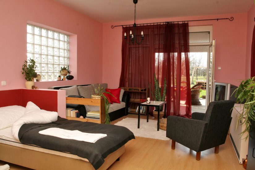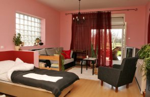 Férőhelyek: 2-4 fő + 1 pótágy + 1 felfújható pótágy. A szobában nagyképernyősTV (23 csatorna).